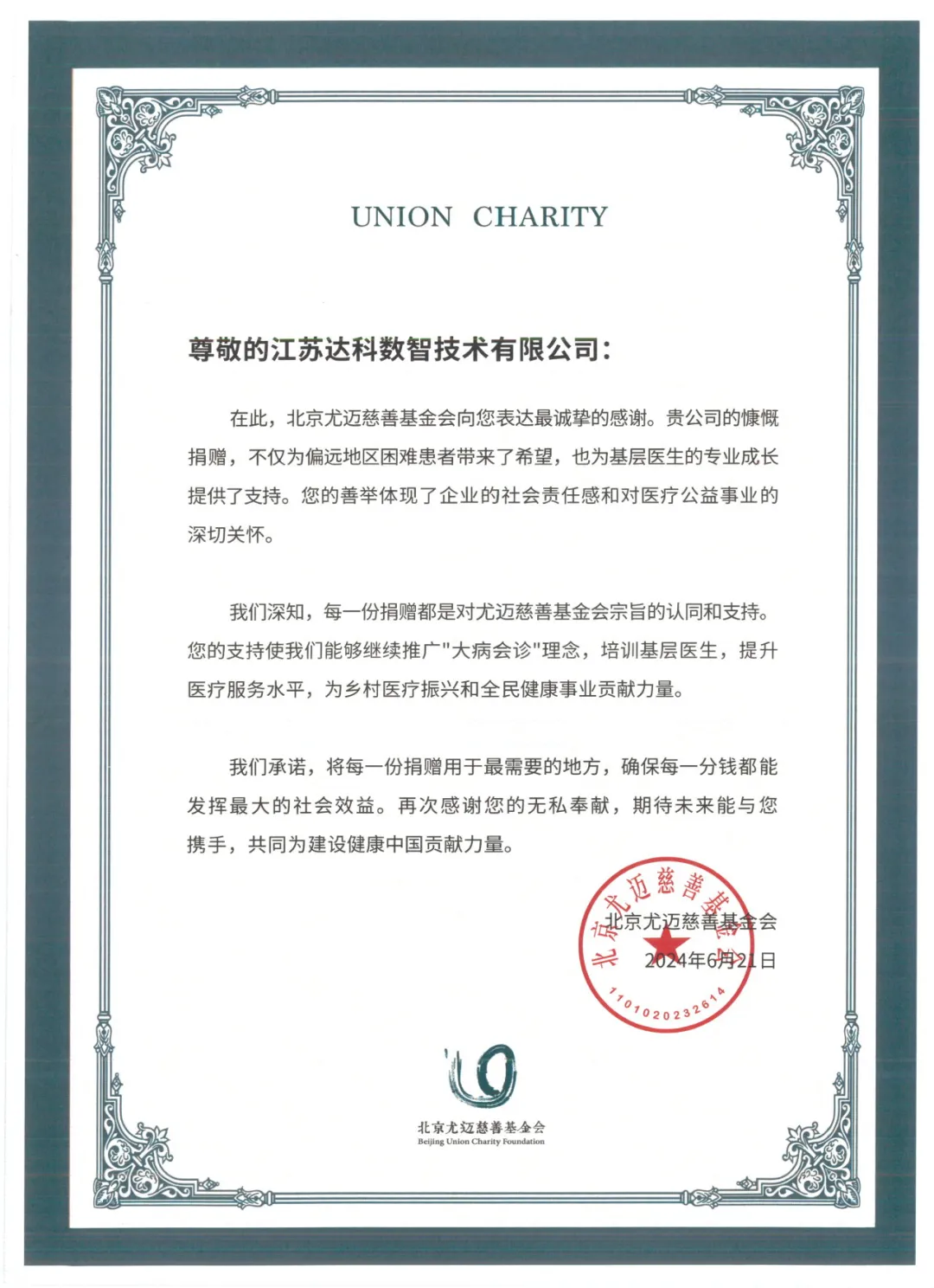 携手尤迈慈善,共筑健康中国梦— 江苏达科数智技术有限公司的公益之旅